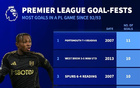 英超历史单场进球榜:富勒姆4-5曼城位列第七,最多为11球
